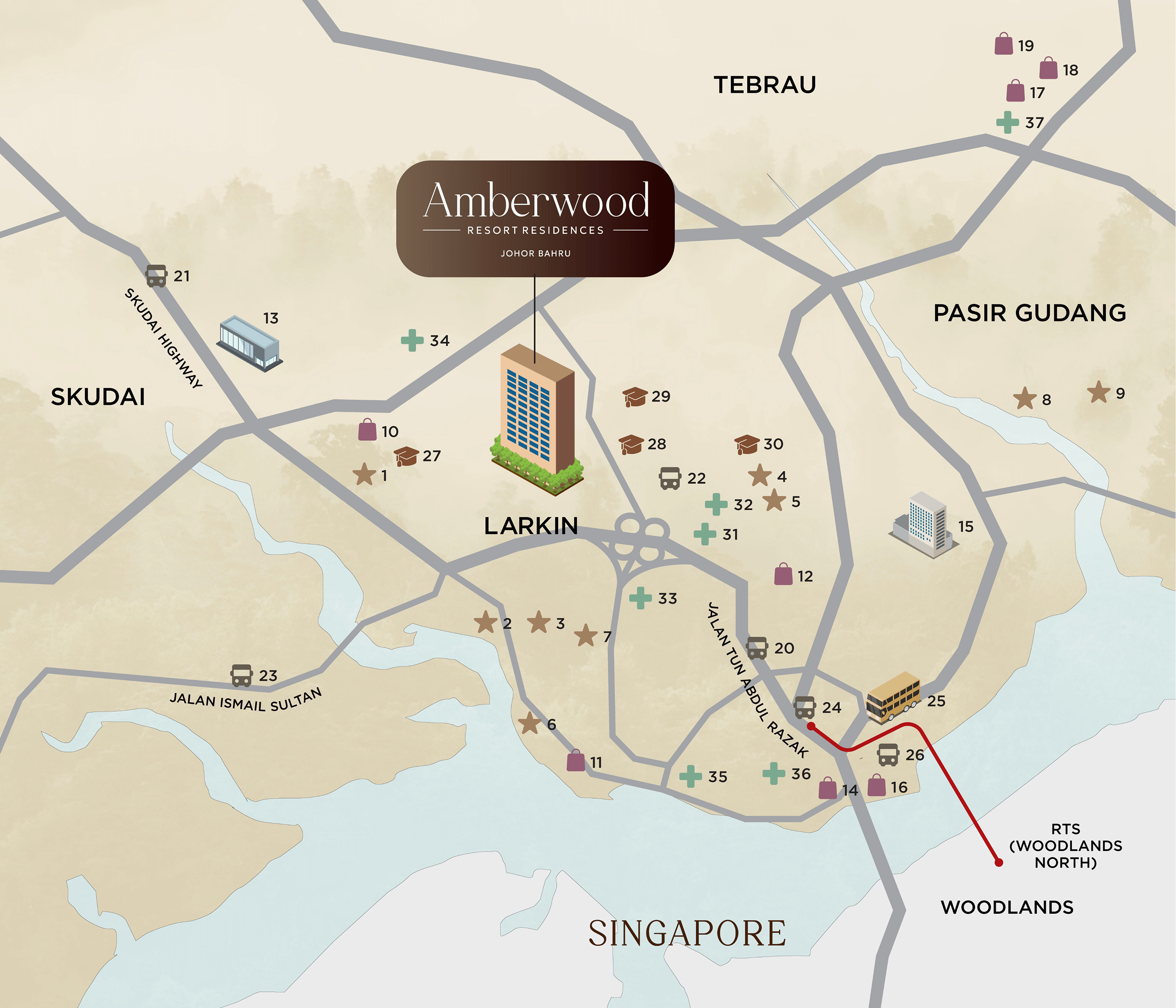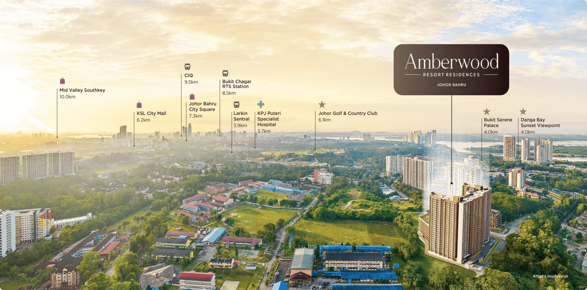 Amberwood is a freehold, nature-inspired residence in the heart of Johor Bahru, offering bedroom layouts with wellness-focused amenities and skyline views.
